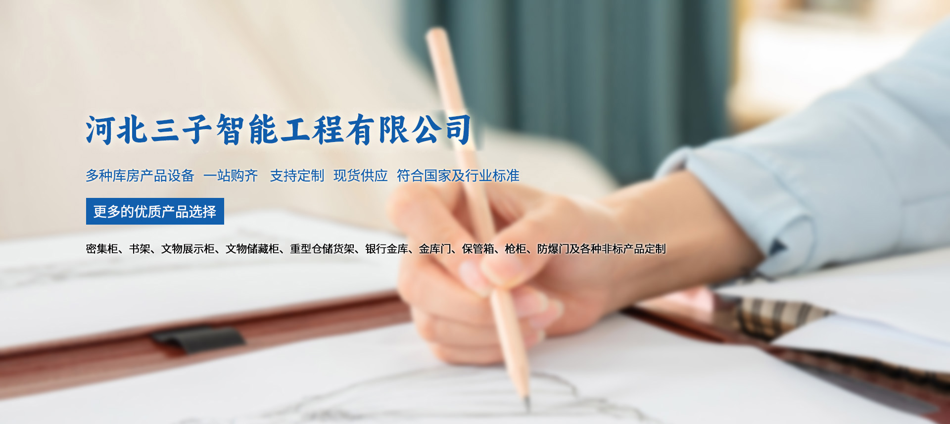 河北三子智能工程有限公司主營(yíng)密集柜、書(shū)架、文物展示柜、文物儲(chǔ)藏柜、重型倉(cāng)儲(chǔ)貨架、銀行金庫(kù)、金庫(kù)門、保管箱、槍柜、防爆門及各種非標(biāo)產(chǎn)品定制。我們集研發(fā),設(shè)計(jì),生產(chǎn),銷售和服務(wù)于一體,擁有國(guó)內(nèi)先進(jìn)的設(shè)備和專業(yè)的制作團(tuán)隊(duì),我們秉承踏實(shí),創(chuàng)新,責(zé)任的企業(yè)精神服務(wù)于檔案存儲(chǔ),倉(cāng)儲(chǔ)物流,農(nóng)業(yè)部,博物館,美術(shù)館,銀行,部隊(duì),學(xué)校等多個(gè)領(lǐng)域,我們始終堅(jiān)持用戶至上和精益求精為客戶提供優(yōu)質(zhì)的產(chǎn)品及服務(wù)。